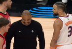 比赛中,狄龙故意撞倒亚当斯,乌度卡一开始跟狄龙激烈对峙,但骂两句笑场了...