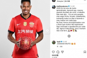 今日海港外援茹萨在社媒发文,对赛季表现进行总结,他写道: