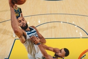 本场比赛,森林狼中锋戈贝尔攻防两端表现出色,出场35分钟13投11中,罚球3中2砍下24分14篮板1助攻2抢断1盖帽,正负值+8。