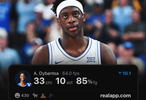 迪班萨在刚刚结束的比赛中,砍下33分10板10助的三双表现!成为了NCAA历史上最年轻拿到30得分三双的球员!