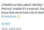 雷迪克谈及湖人队的球队特质时表示:“我们仍在摸索,这话或许像借口——可能确实是借口。但我很清楚,我们的表现始终断断续续未能连贯。”