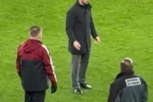 阿尔特塔赛后与教练组致意后,试图寻找埃梅里握手,但他东张西望始终看不到人,最终维拉的一名工作人员主动过来与阿尔特塔握了手。
