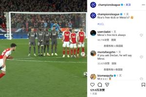 体育资讯11月16日讯 欧冠官方ins今日对比了梅西和赖斯的任意球。分别是欧冠1/4决赛首回合,阿森纳主场3-0完胜皇马,赖斯的任意球和2018-2019赛季欧冠半决赛首回合巴塞罗那3-0利物浦,梅西的任意球。